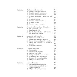 En once capítulos el ilustre jurista ecuatoriano abarca de manera completa clara y precisa temas como el dominio, la propiedad, los modos de adquirir, la ocupación, la accesión, la tradición, la prescripción, reivindicación y el fideicomiso.